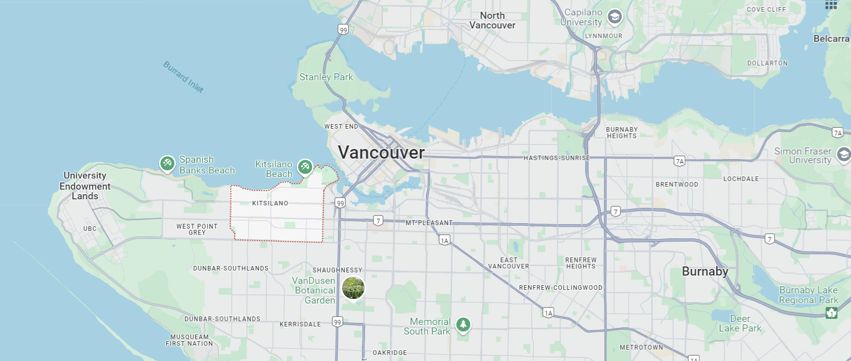 Kitsilano is situated just southwest of downtown Vancouver, bordered by the bustling streets of West Broadway to the north, the Pacific Ocean to the west, and the charming neighborhood of Point Grey to the south. Its convenient location allows easy access to public transit, including the SkyTrain and several bus routes, making it simple for residents and visitors to explore the broader Vancouver area.